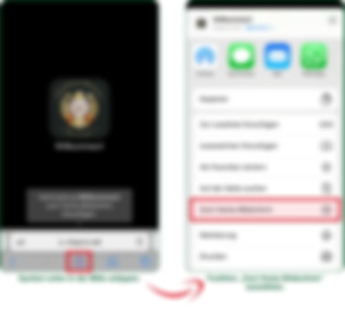 Nun müsst ihr das Symbol unten in der Mitte antippen, um die nächste Option „Zum Home-Bildschirm“ auswählen zu können.